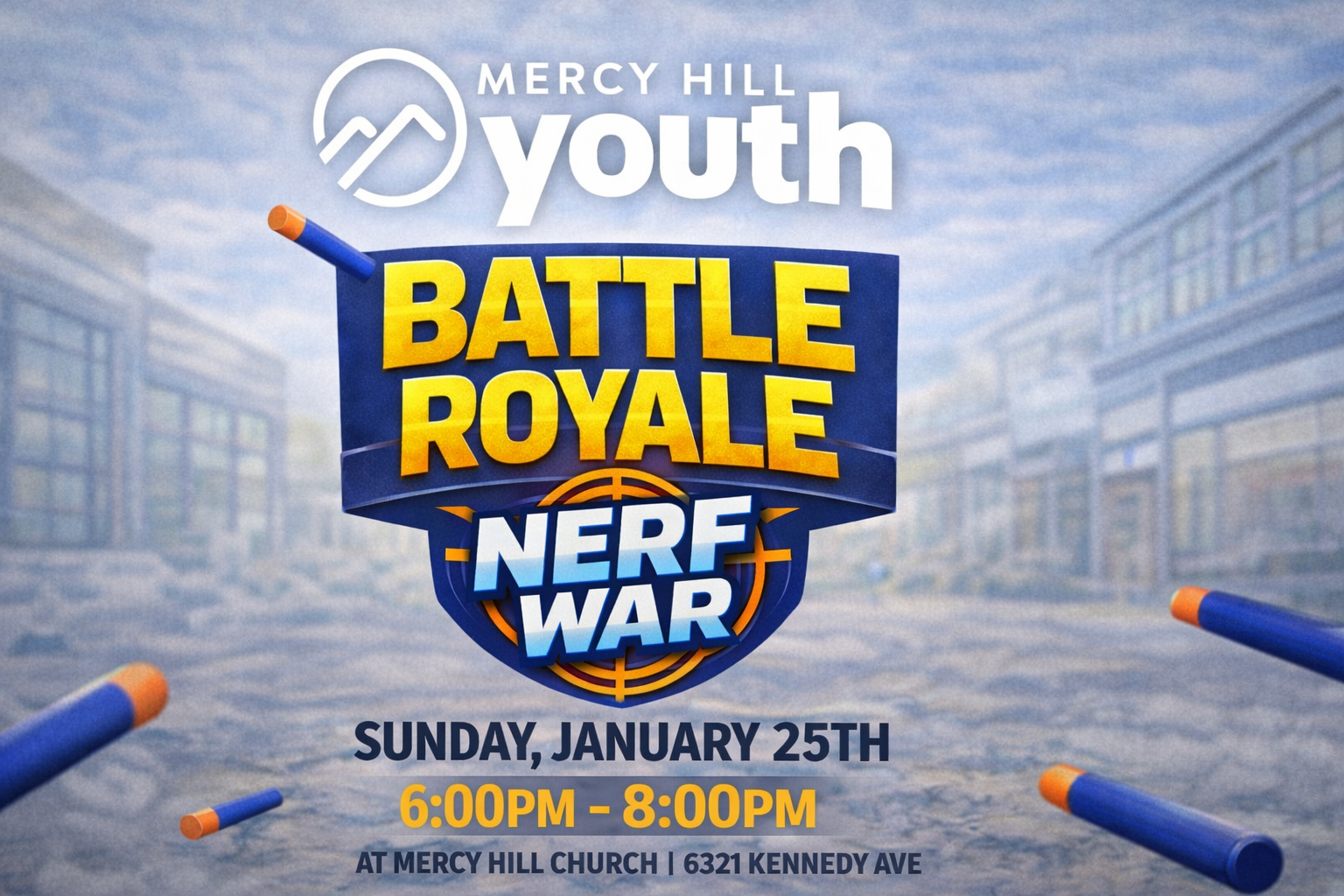 Join us on Sunday, February 15th from 6–8pm at Mercy Hill Church for an epic night of Nerf battles, team challenges, and all-out fun! We’ll transform the space into a battleground where strategy, speed, and teamwork matter. Whether you’re dodging darts or leading your squad to victory, this is a night you don’t want to miss. Bring your friends, wear athletic clothes, and come ready for action!