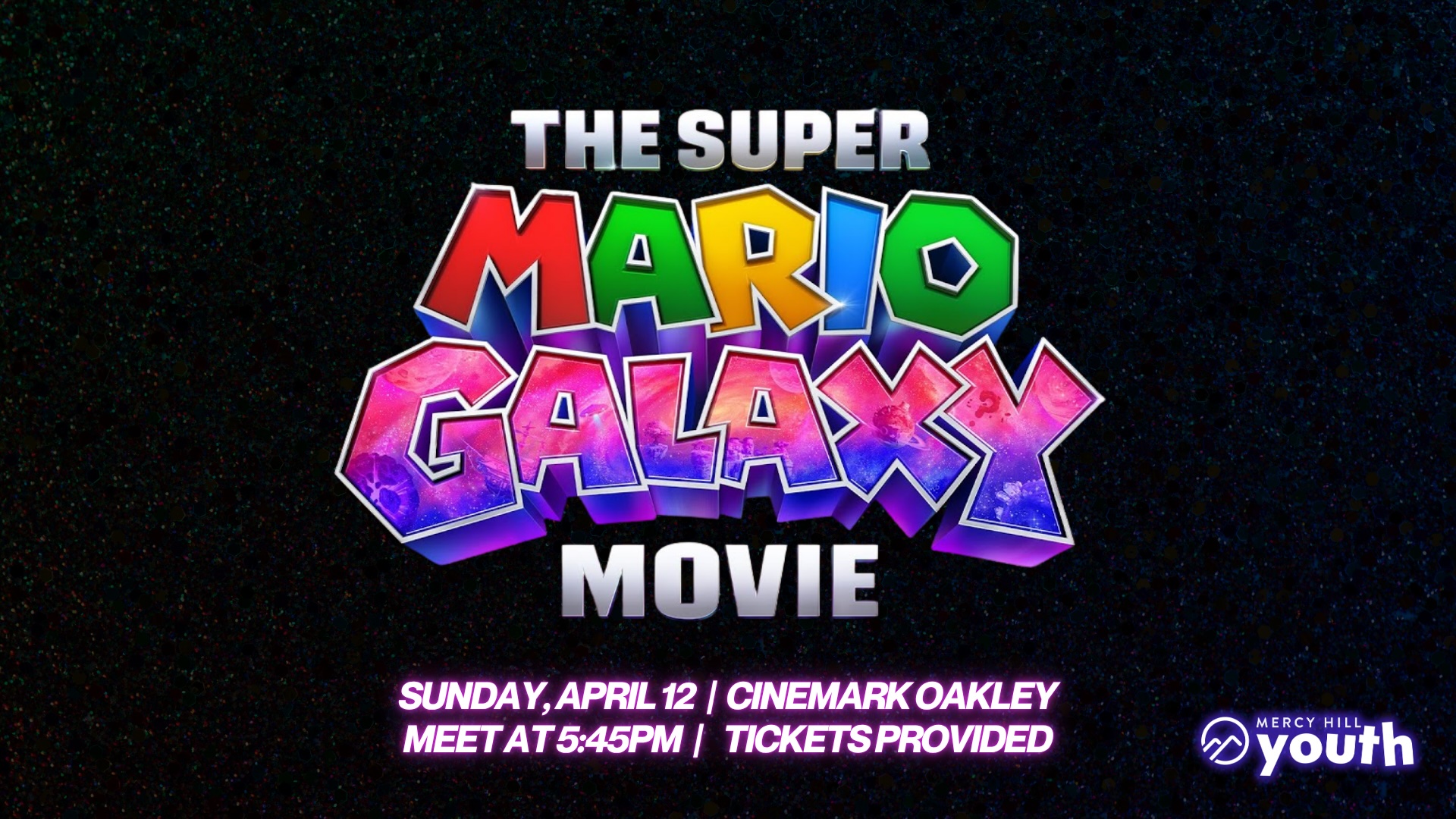 Join Mercy Hill Youth for a fun night at the movies as we head out to see The Super Mario Bros. Movie together on April 12th at Cinemark Oakley! The movie begins at 6:00pm, so please arrive by 5:45pm to get settled. Tickets are on us, so just come ready to hang out and enjoy a great night together!